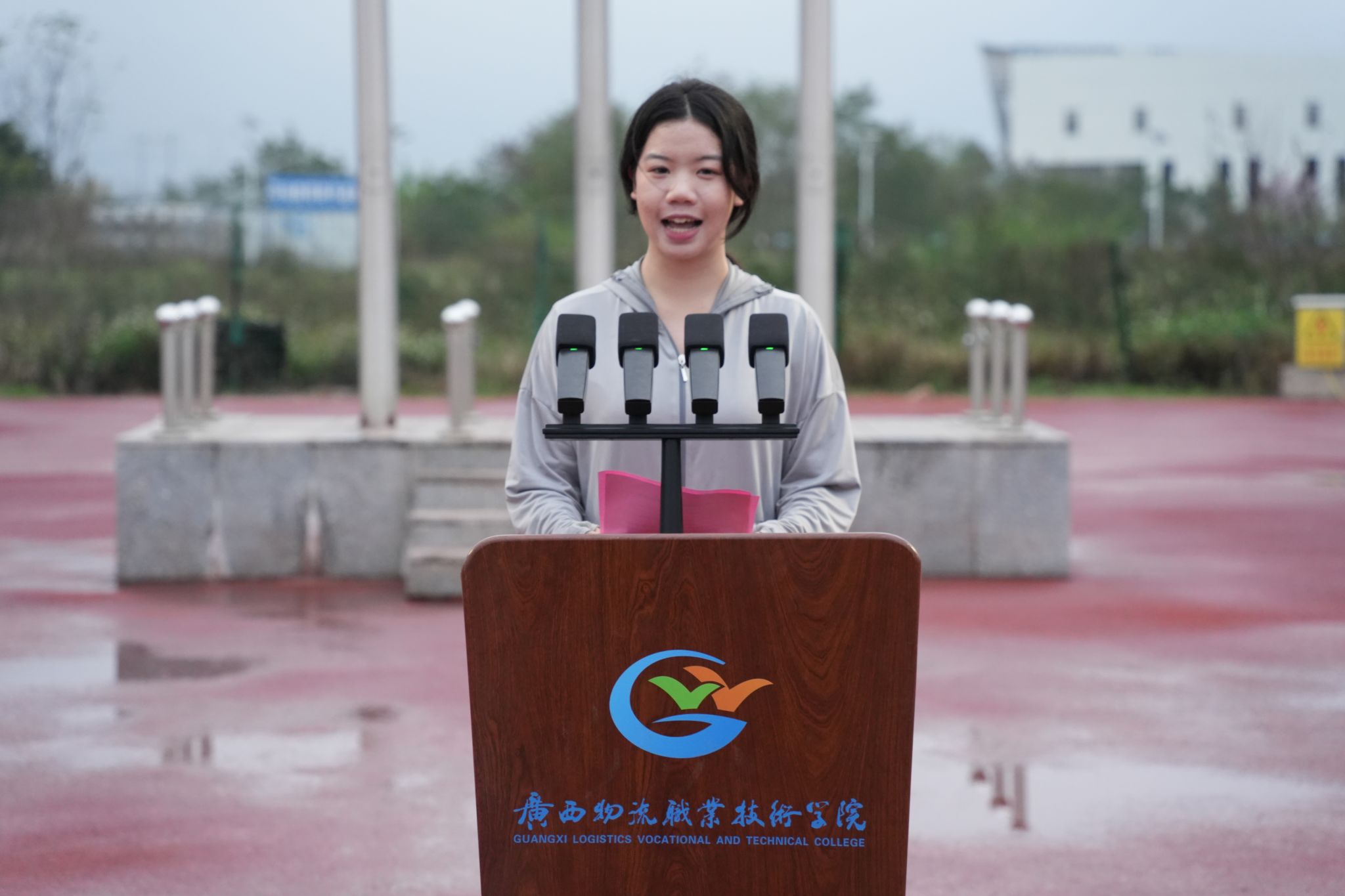 为进一步加强校园精神文明建设,深化大学生爱国主义教育,以崭新面貌开启新学期征程,展现我校学子热爱祖国、昂扬向上的精神风貌。3月2日,新学期开学第一天,我校举行“传承雷锋精神,争做时代新人”主题升旗仪式。学校党委书记漆辉出席升旗仪式并讲话。物流工程学院党总支书记、院长黎聪主持升旗仪式。党委学生工作部部长林锋、副部长李悦政,物流工程学院全体教职工、2025级全体在校学生参加升旗仪式。